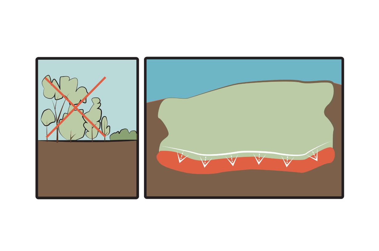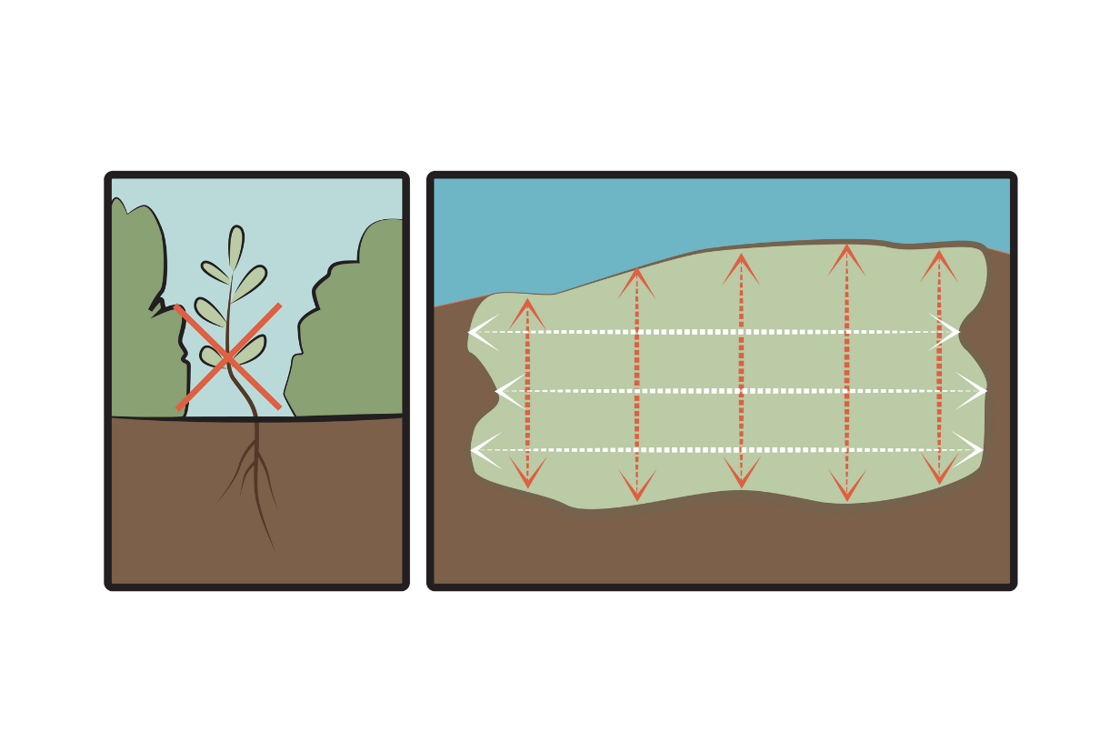 ❌ Evitar pisar ou perturbar a flora ameaçada ou mais sensível existente