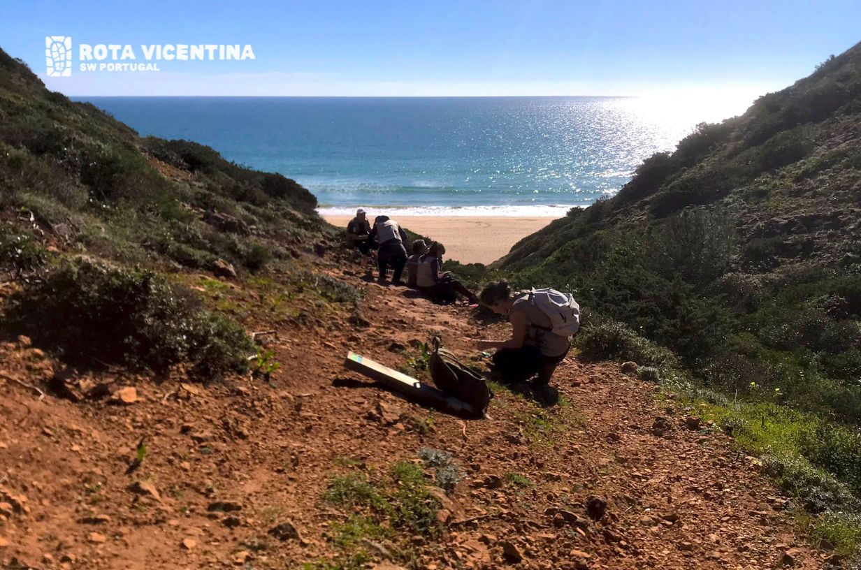 Neste dia o frio não se fez sentir e o sol brilhou como se fosse Verão. Caminhámos pela terra vermelha e pedregosa das arribas algarvias, descobrindo vales escondidos que revelam praias discretas e um mar calmo de azul cristalino. A manutenção deste trilho foi exigente mas não abalou a energia e persistência do grupo de voluntários!