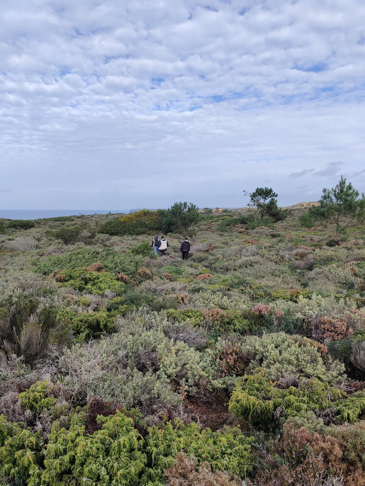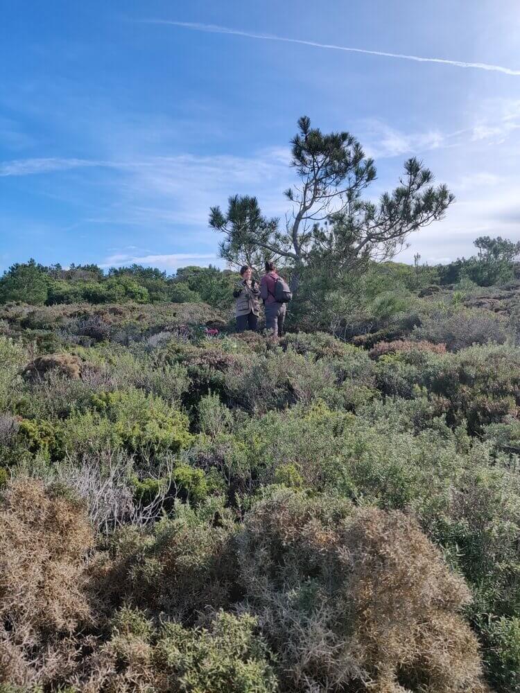 Antes de pormos as mãos na massa, tivemos a oportunidade de contemplar e conhecer um pouco da flora autóctone deste local, pelo olhar da Bióloga Paula Canha que nos mostrou algumas espécies como o Tomilho-canforado, a Camarinha, Perpétua-das-areias e a Armeria pugens.
