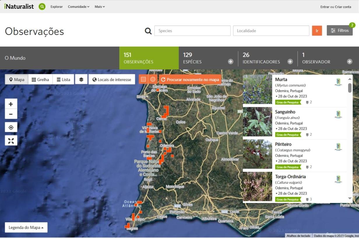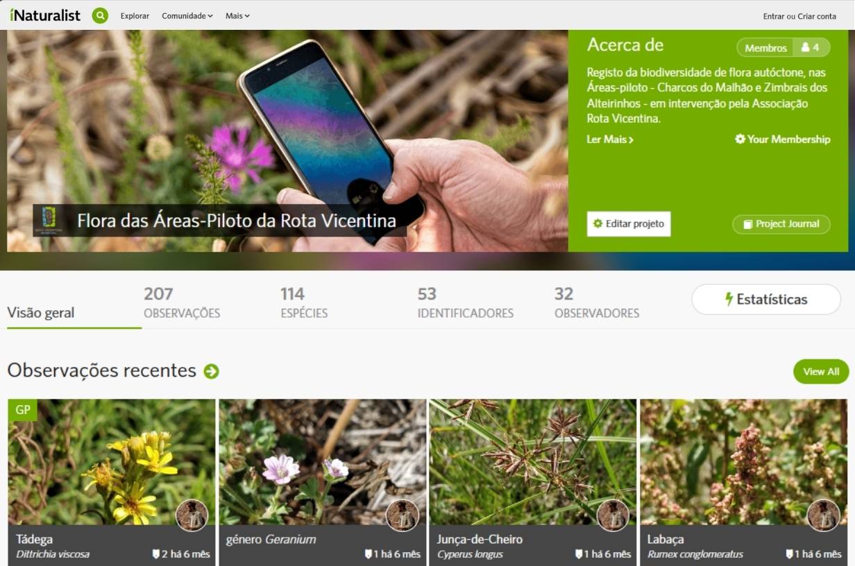 - With your account created, you can search for the project “Flora das Áreas-piloto da Rota Vicentina”.