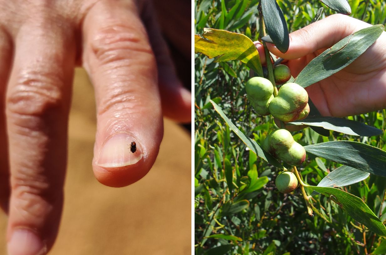 Trichi– short for Trichilogaster acaciaelongifolieae – is the name of a small wasp, having the size of a fruit fly, that feeds solely on the long-leaved wattleAcacia longifolia) and helps to control its propagation.