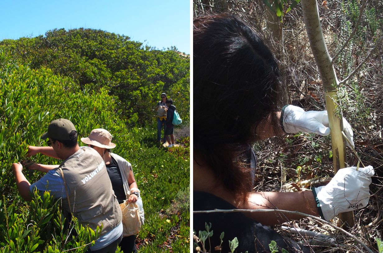 To close the activity, we walked to the main invasion front of acacia to learn some invasive control techniques, such as manual pulling or peeling of acacias, and good practices and care to take.