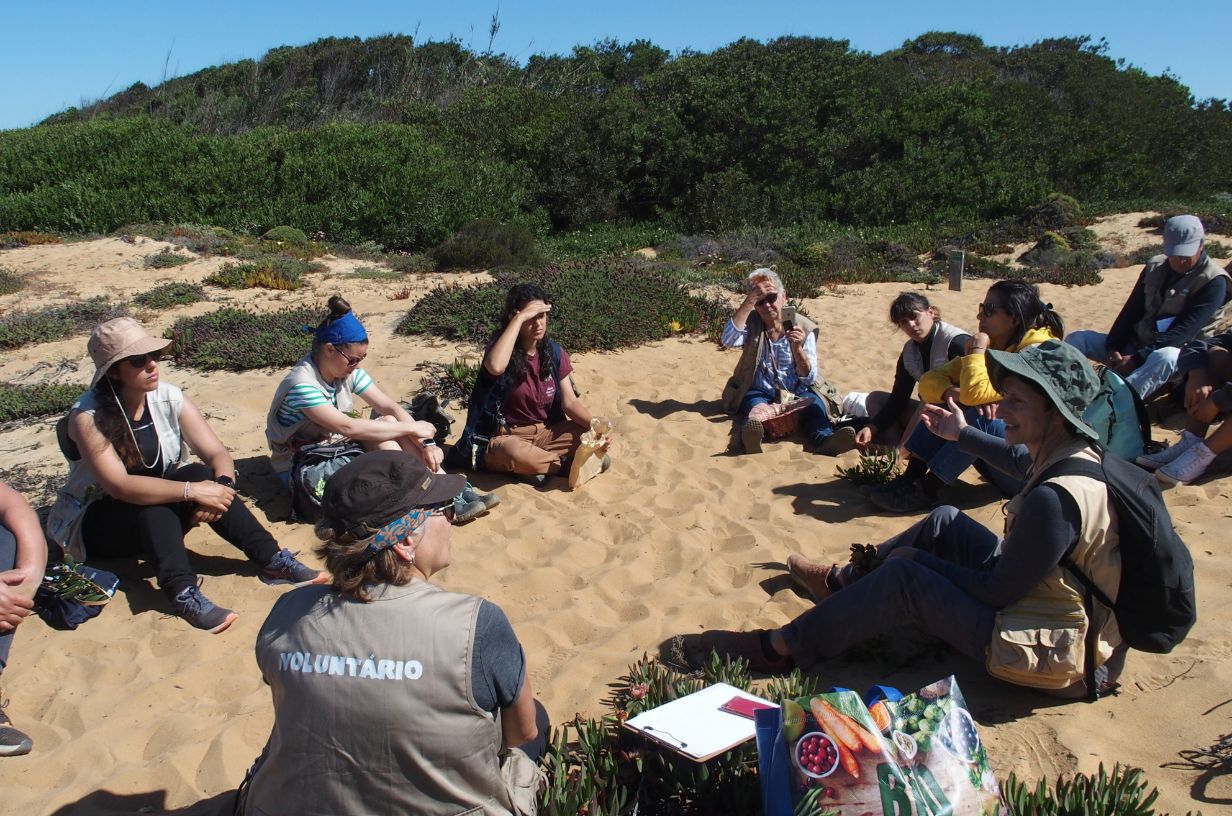 On Sunday afternoon, we walked through the Sea-sand juniper (or Juniperus navicularis) shrubland, a plant that is endangered and is distributed in some patches along the southwestern Alentejo coast. Being the reason why the Alteirinhos pilot area was chosen as an invasive control area by Rota Vicentina, it was also the reason why the Rewilding Association joined us in this activity.
