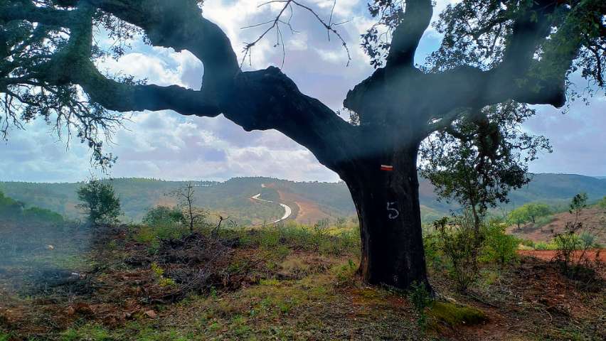 A more complex stage, but very present. We struggle with the challenge of moving quickly while feeling the sand under our feet. The Fishermen’s Trail is not a walk in the park, and many hikers have walking sticks! I stroke the rough bark of the cork oak trunk after the cork harvest. Fatima, a taxi driver based in S. Teotónio, explains that cork harvesting occurs every nine years. The number inscribed on each tree corresponds to the year of harvest. The weather also gives us a hard time, with the sun’s heat, gusts of wind, or rain on our skin and damp clothes. Finally, we feel the coolness of the stones we pick up between Cercal do Alentejo and S. Luís. This part of the Historical Path is my favorite of the four days. There’s a lot of quartz on the ground; the region is rich in it because it is mainly found in water-rich areas. We’re told that many communities settle in Alentejo, especially for the energies that the land concentrates.