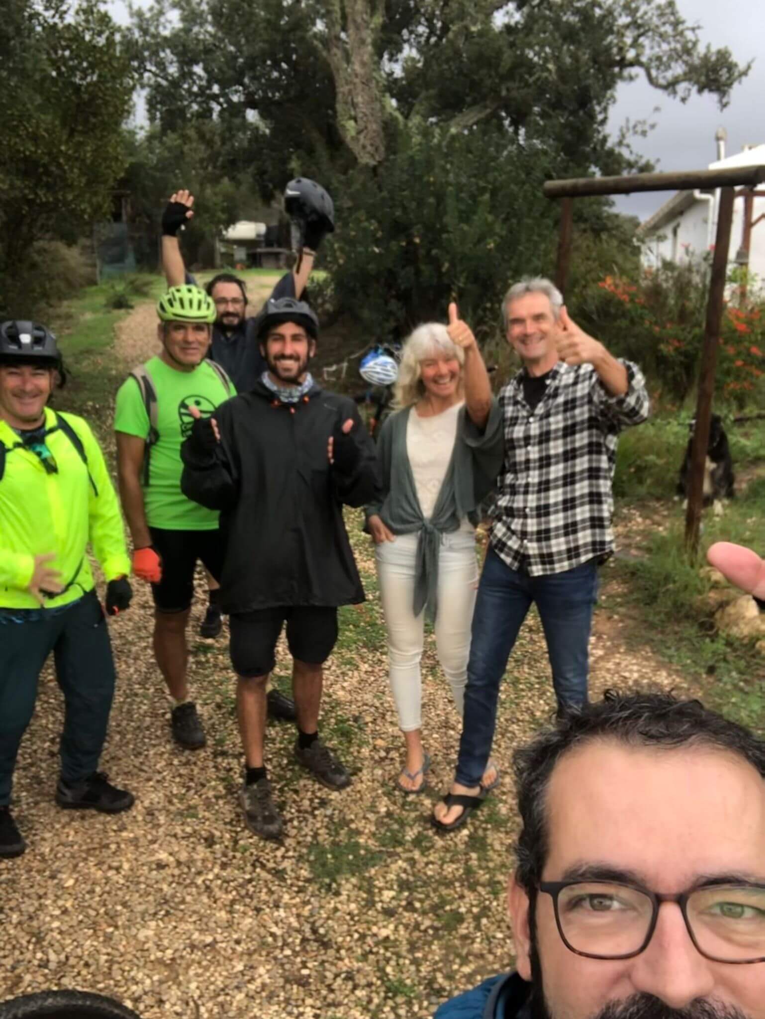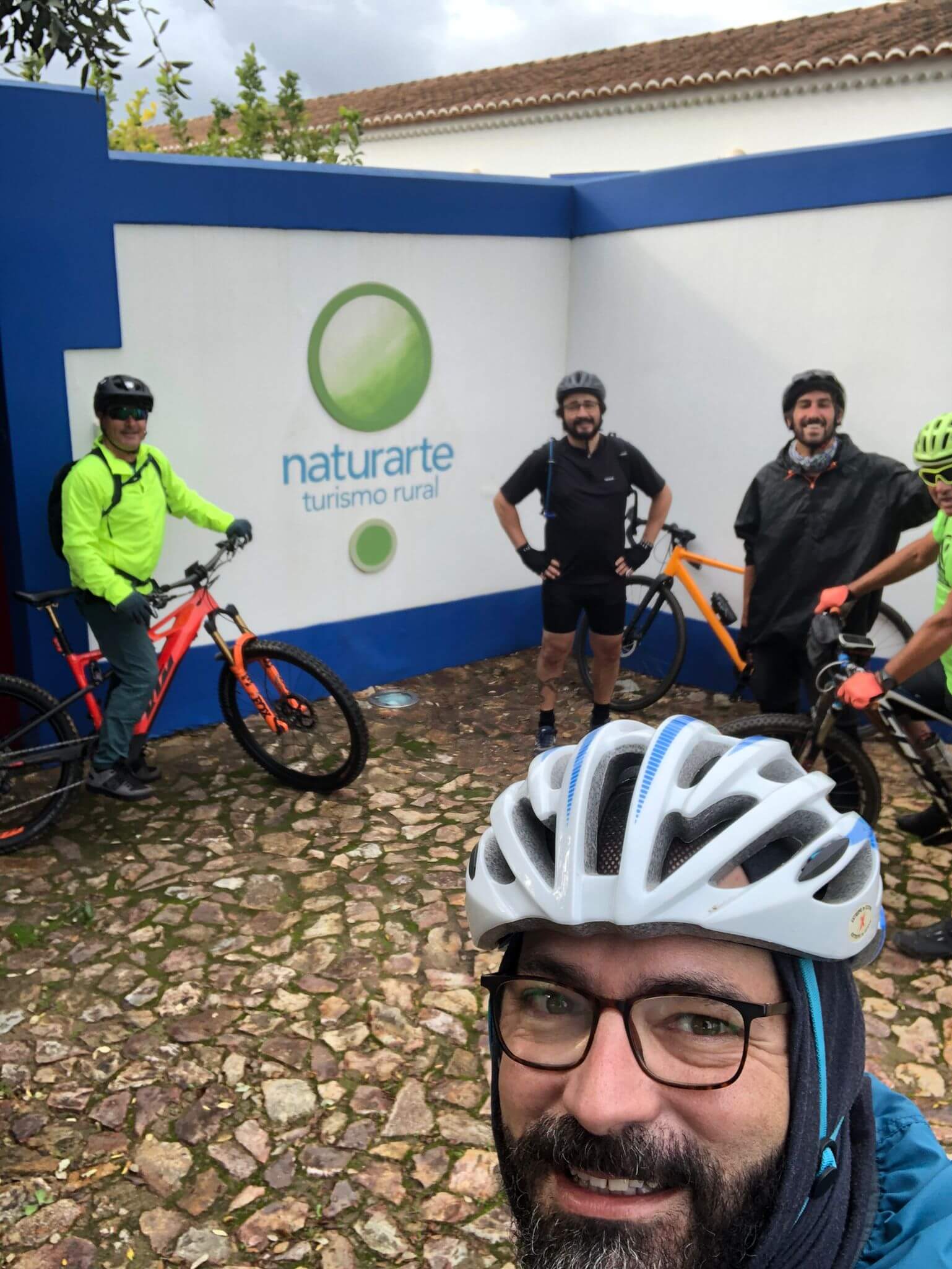 Começamos de S. Luís, no Naturarte Campo, onde pernoitamos – e logo à saída da vila tivemos um pequeno problema elétrico numa das e-bikes. 3 km depois, um furo. Enquanto se remendava… muita água se abateu sobre nós! E até ao Castelão, novamente. Já não havia roupa seca a bordo! Com muito atraso ainda fomos ao Portugal Nature Lodge, em Troviscais para visita ao Peter e à Joke e verificar a bike station aqui instalada. Tudo ok e ainda uma fatia de bolo caseiro para recuperar fôlego e seguirmos até Odemira.