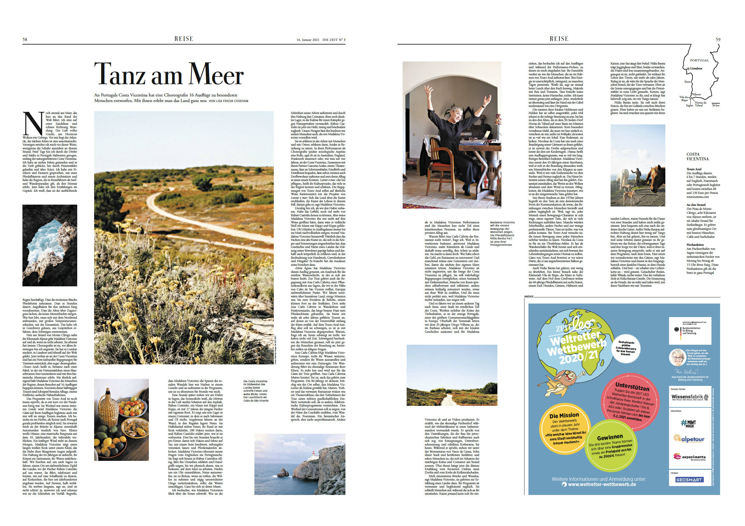 The article by Lisa Frieda Cossham was published in the 2021 3rd edition of the German weekly Die Zeit, as a result of the Autumn 2020 Press Trip promoted by Algarve Tourism Bureau, which included Rota Vicentina and the cultural program Touro Azul.
