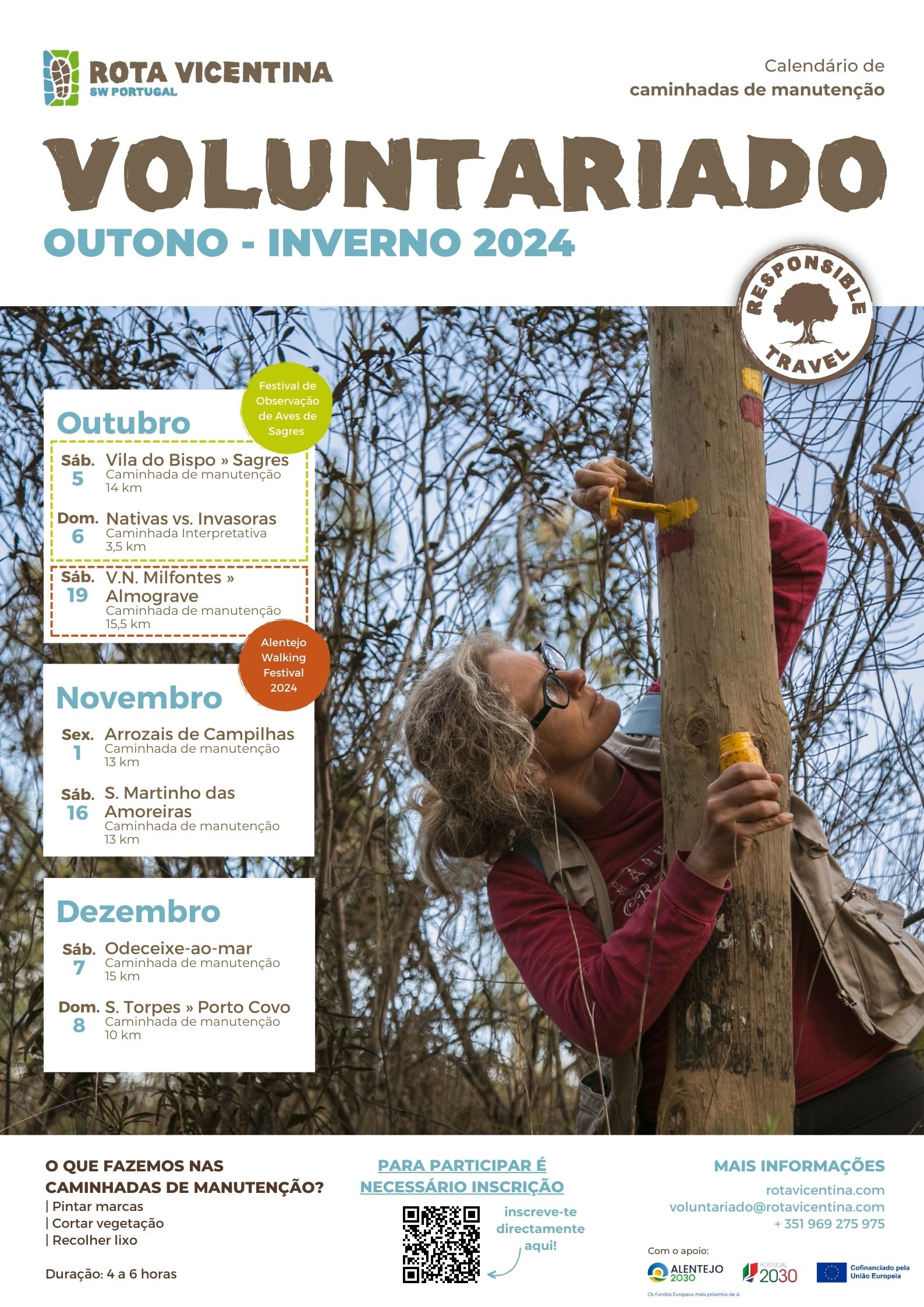 Este calendário conta com caminhadas de manutenção ao longo de todo o território da Rota Vicentina, essencialmente aos sábados e feriados, e pontualmente ao domingo.
